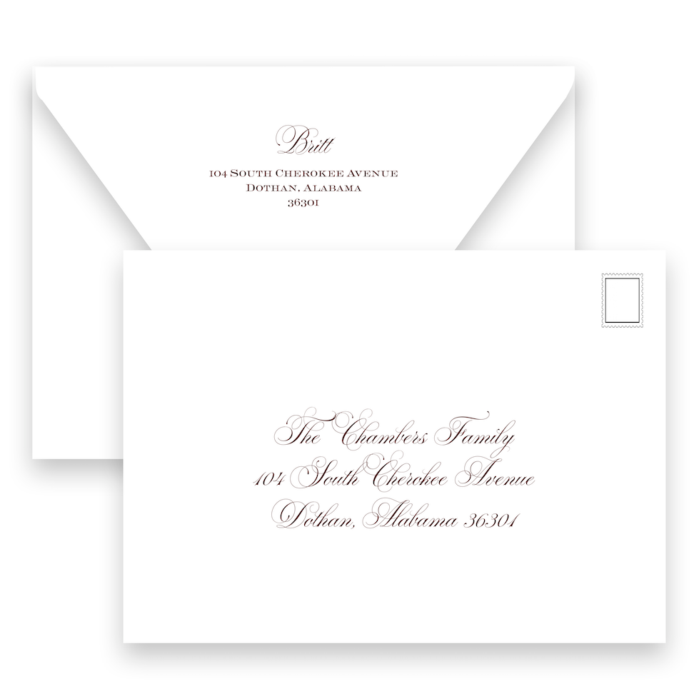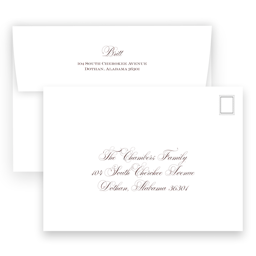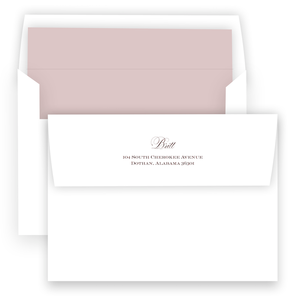 • Envelopes are included with your purchase and will match the paper of your printed product; euro flap envelopes, coordinating liners, gift tags, return and front addressing are available for purchase