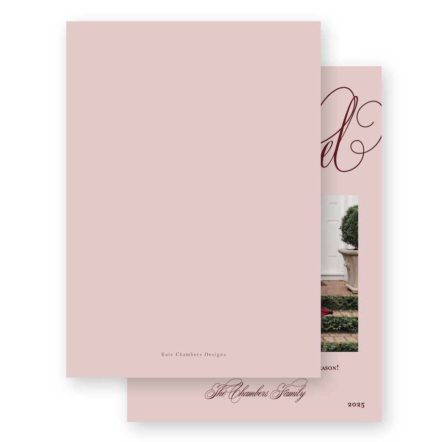 Blush Pink and Maroon Script "Joyeux Noel" Portrait Holiday Card