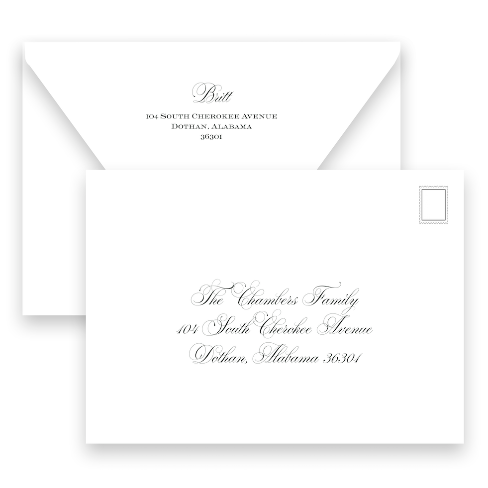 • Envelopes are included with your purchase and will match the paper of your printed product; euro flap envelopes, coordinating liners, gift tags, return and front addressing are available for purchase
