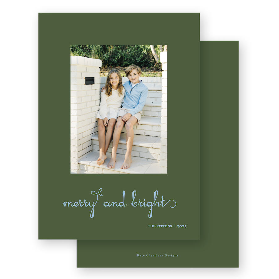 Casual Script "Merry and Bright" Portrait Holiday Card