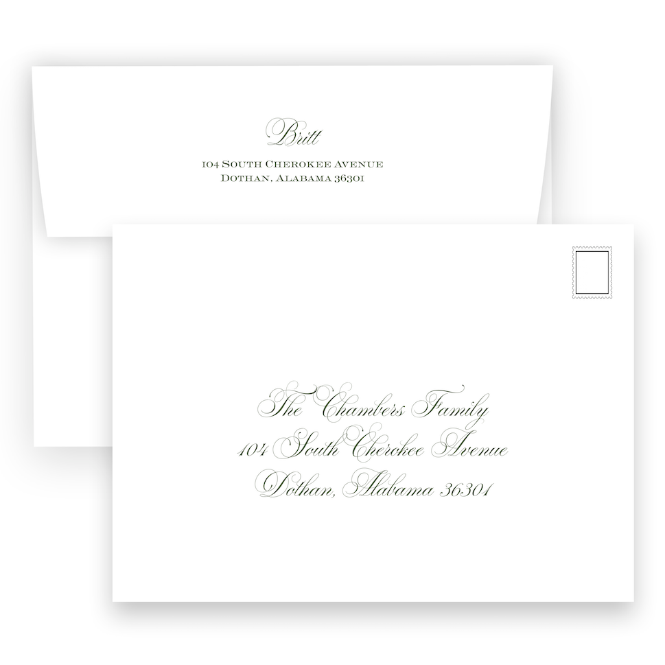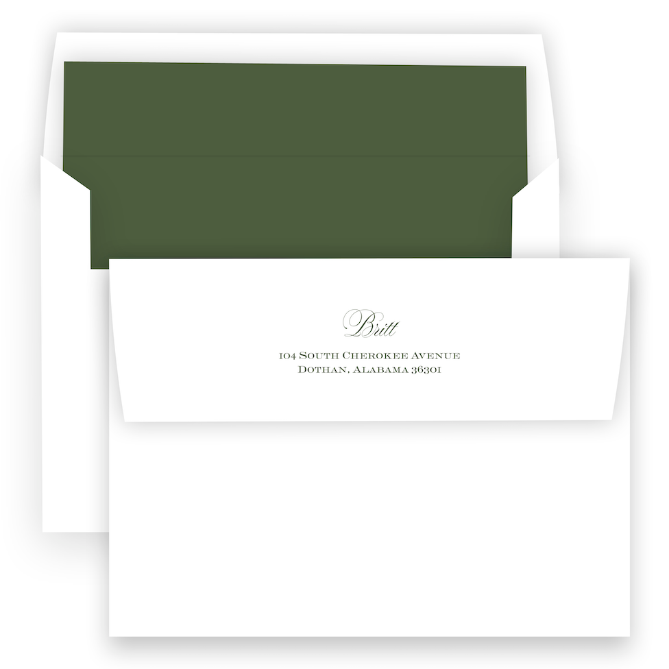 • Envelopes are included with your purchase and will match the paper of your printed product; euro flap envelopes, coordinating liners, gift tags, return and front addressing are available for purchase