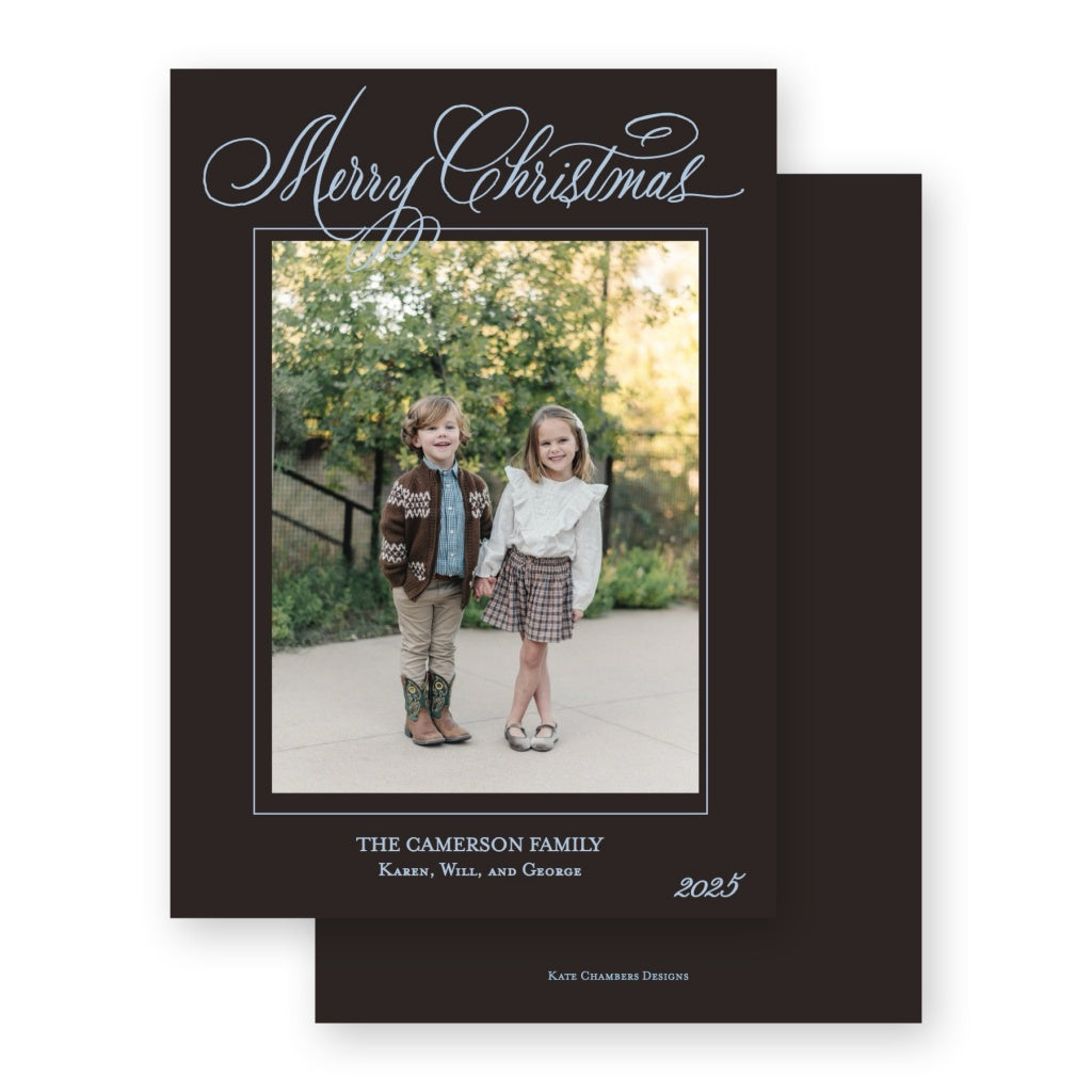 Chocolate and Blue "Merry Christmas" Holiday Card