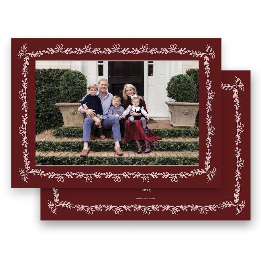 Maroon and Blush Pink Floral Border Landscape Holiday Card