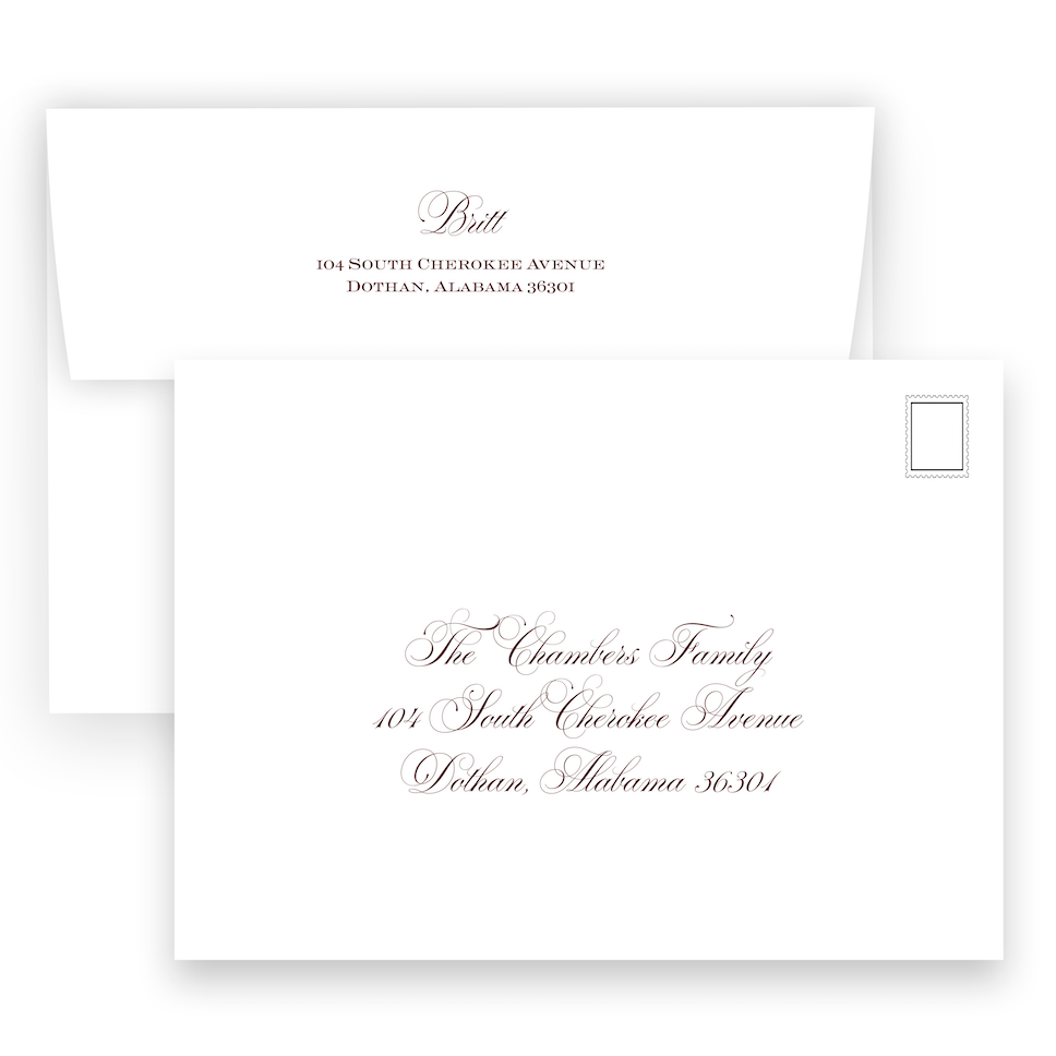 • Envelopes are included with your purchase and will match the paper of your printed product; euro flap envelopes, coordinating liners, gift tags, return and front addressing are available for purchase