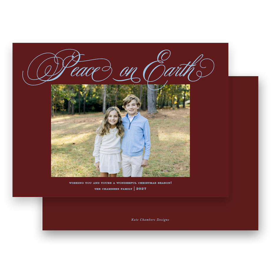 Maroon and Blue "Peace on Earth" Landscape Holiday Card