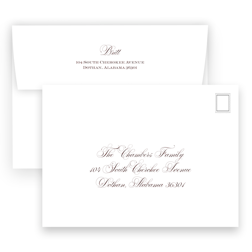 • Envelopes are included with your purchase and will match the paper of your printed product; euro flap envelopes, coordinating liners, gift tags, return and front addressing are available for purchase