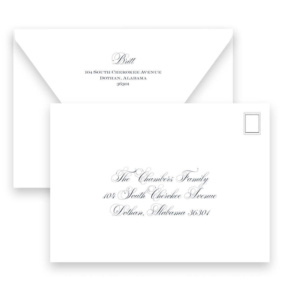 • Envelopes are included with your purchase and will match the paper of your printed product; euro flap envelopes, coordinating liners, gift tags, return and front addressing are available for purchase