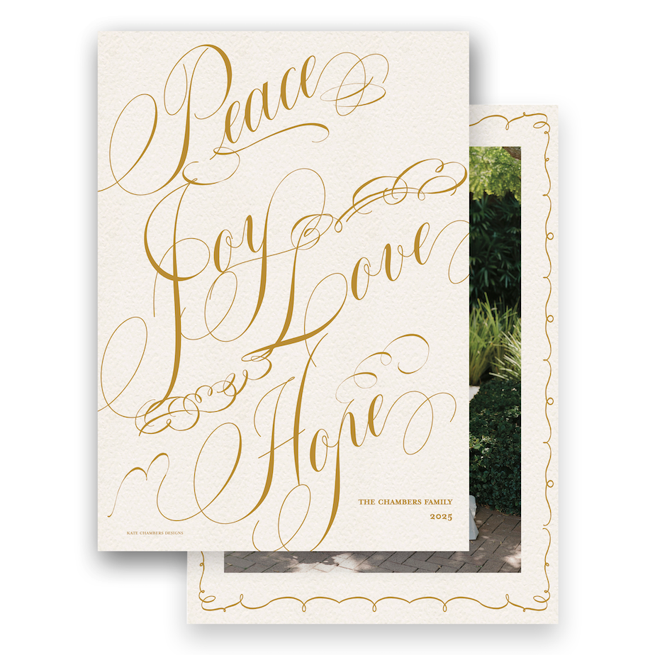 Claret on Pink "Peace, Hope, Joy, & Love " Holiday Card