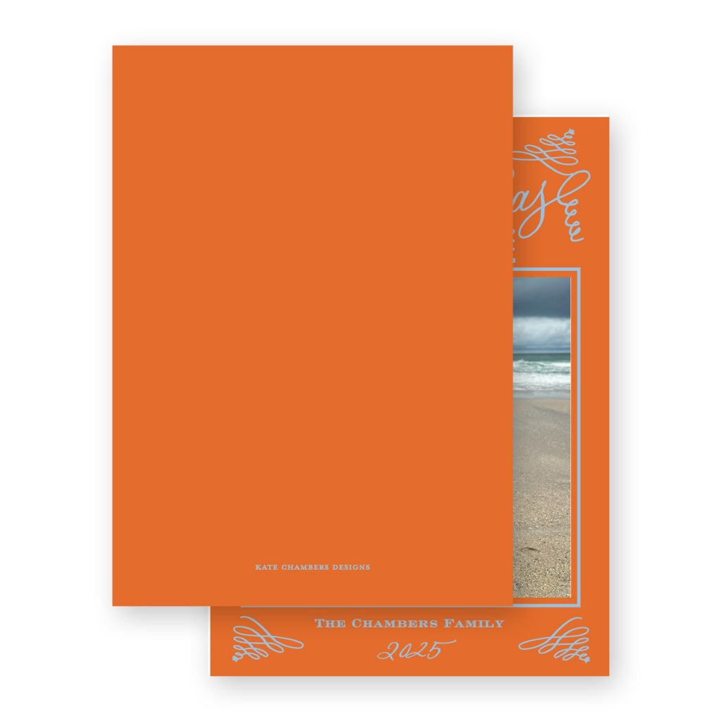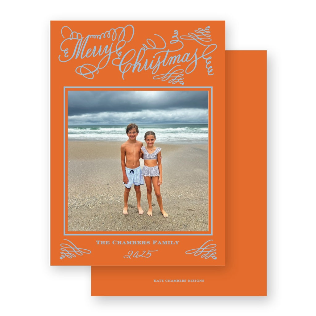 Orange and Light Blue "Merry Christmas" Flourish Holiday Card