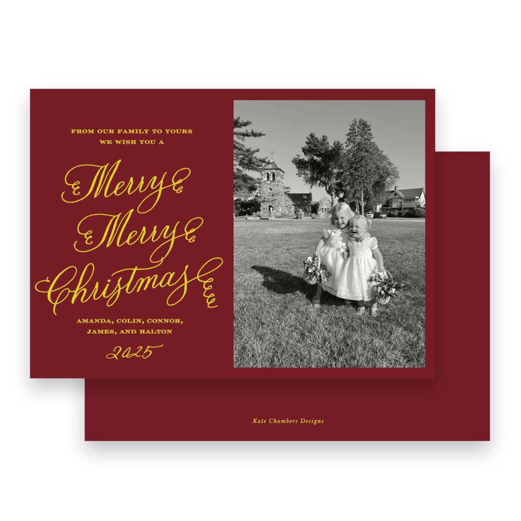 Red and Yellow "Merry, Merry, Christmas " Flourish Holiday Card