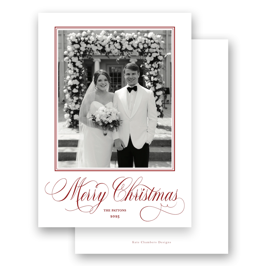 Classic Calligraphy "Merry Christmas" Portrait Holiday Card
