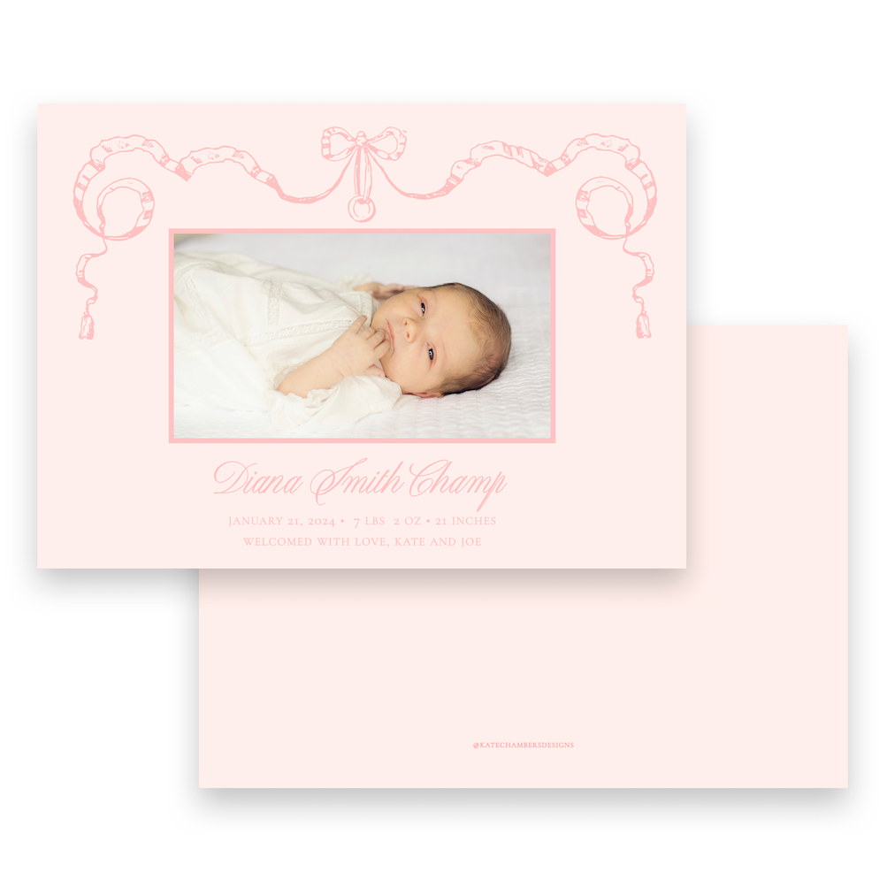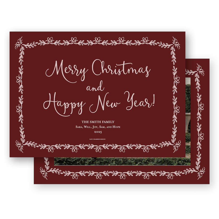 Claret and Blush Simple Script Landscape Holiday Card / Birth Announcement