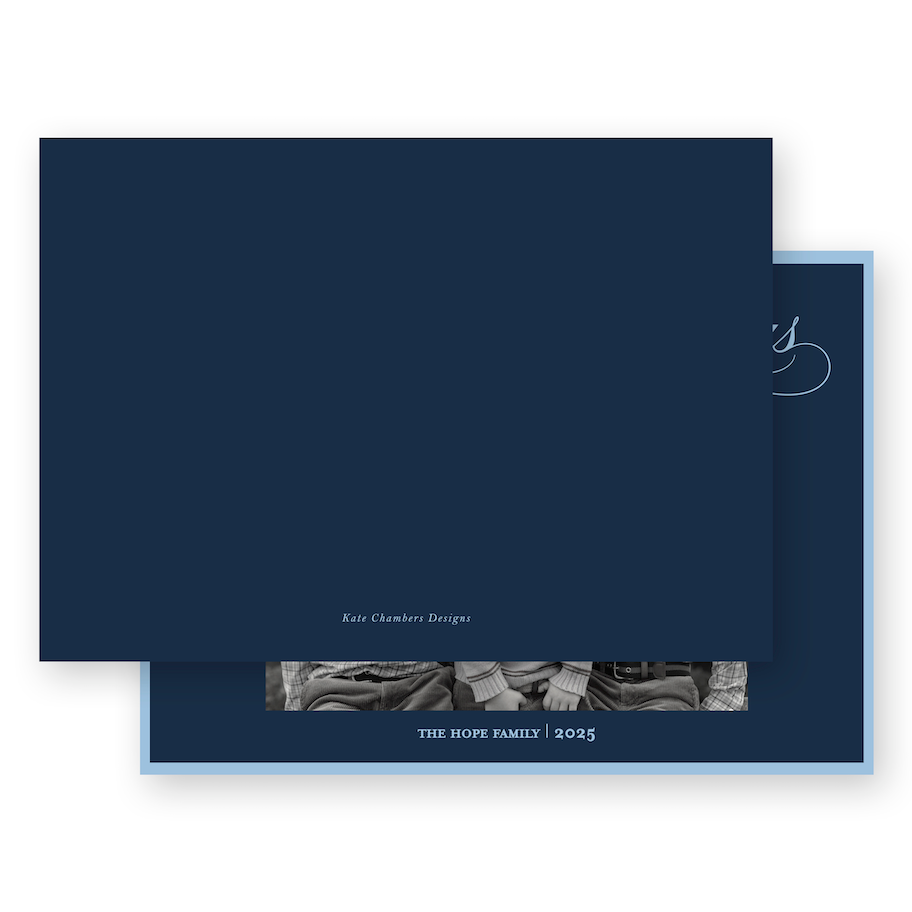 Navy and Blue Classic Calligraphy "Merry Christmas" Landscape Holiday Card