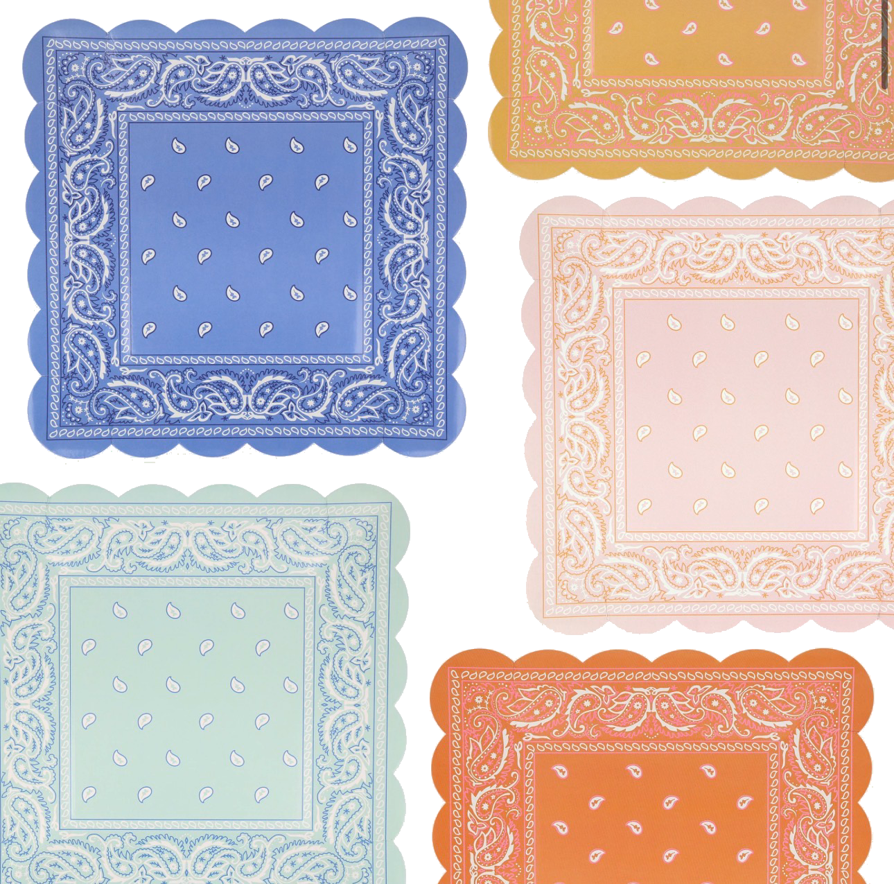 Yeehaw, it's time for a Western party! This theme evokes an adventurous vibe, with lots of opportunity for rustic charm, hearty food and dancing. A fun theme to celebrate a birthday party for all ages, a country music event or a BBQ. Bring the spirit of the frontier to life with these bandana paper plates, to add a playful decoration to your party table or buffet.