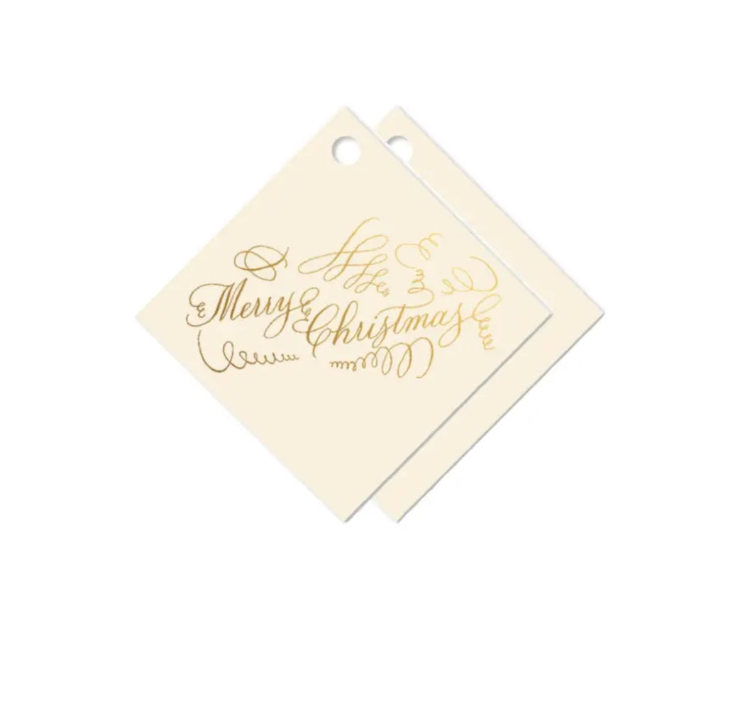 "Merry Christmas" on Gold Holiday Ivory Tags, Set of 15