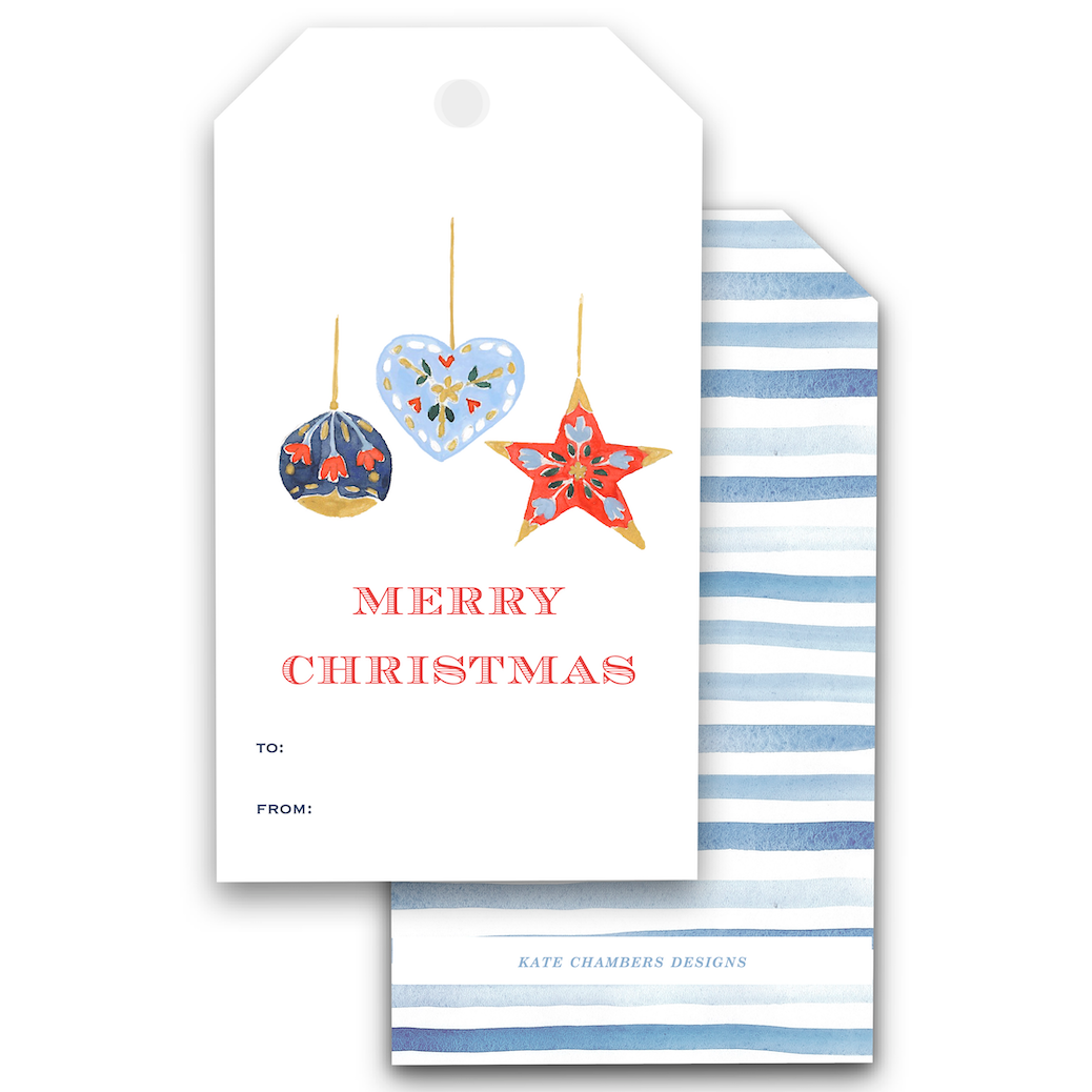 Blue and Red Watercolor Ornament Holiday Gift Tags, Set of 12