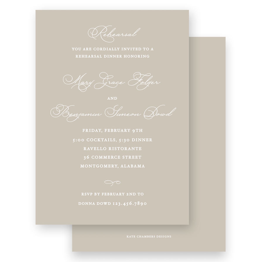 Classic Taupe with Florals Rehearsal Dinner Invitation