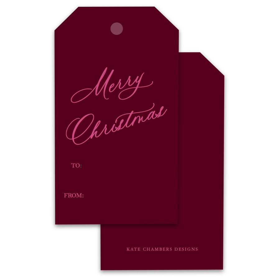 Claret and Pink Merry Christmas Holiday Gift Tags, Set of 12