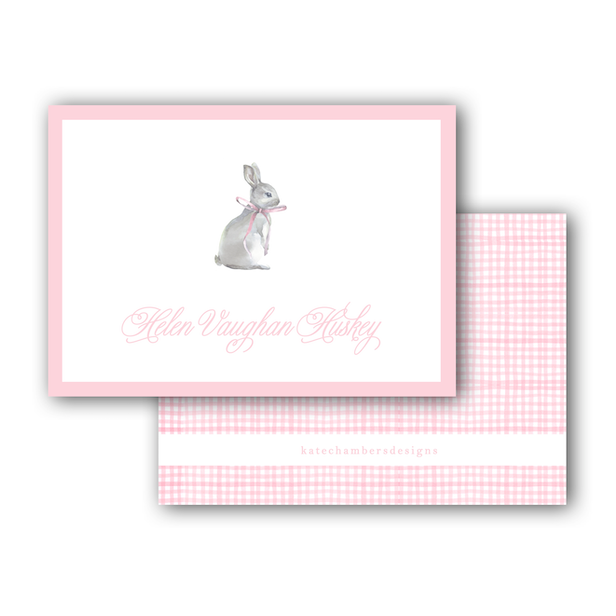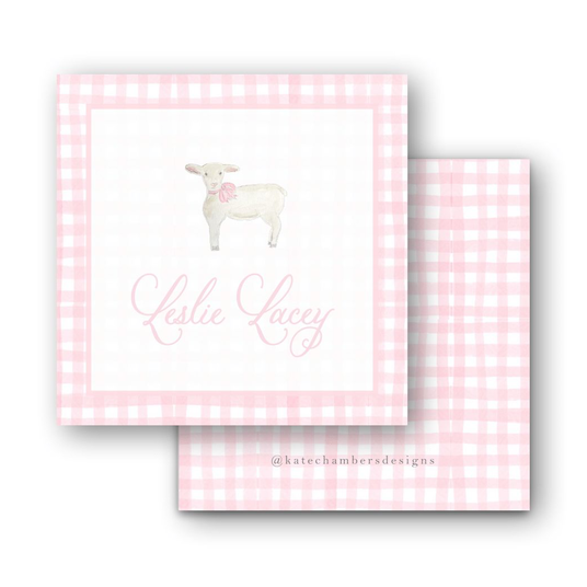 Watercolor Lamb with Pink Gingham Border Square Enclosure Card
