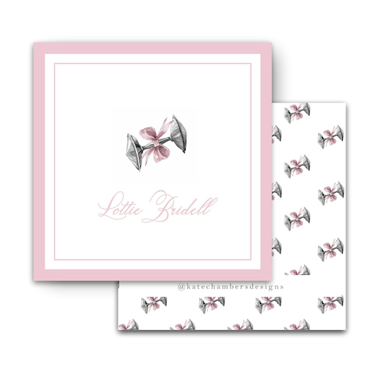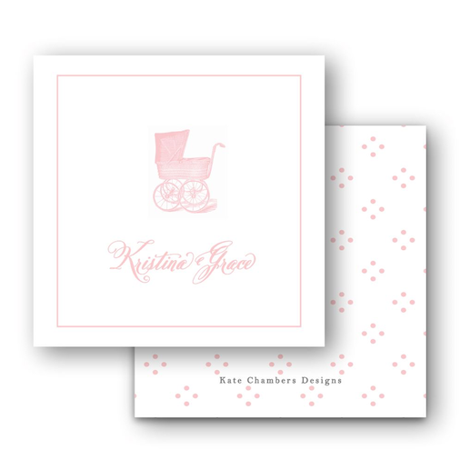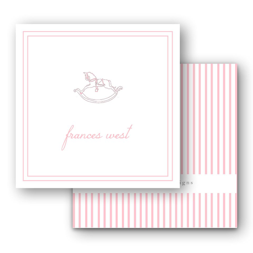Silver Rattle with Pink Ribbon Square Enclosure Card
