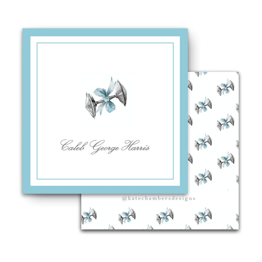 Silver Rattle with Blue Ribbon Square Enclosure Card