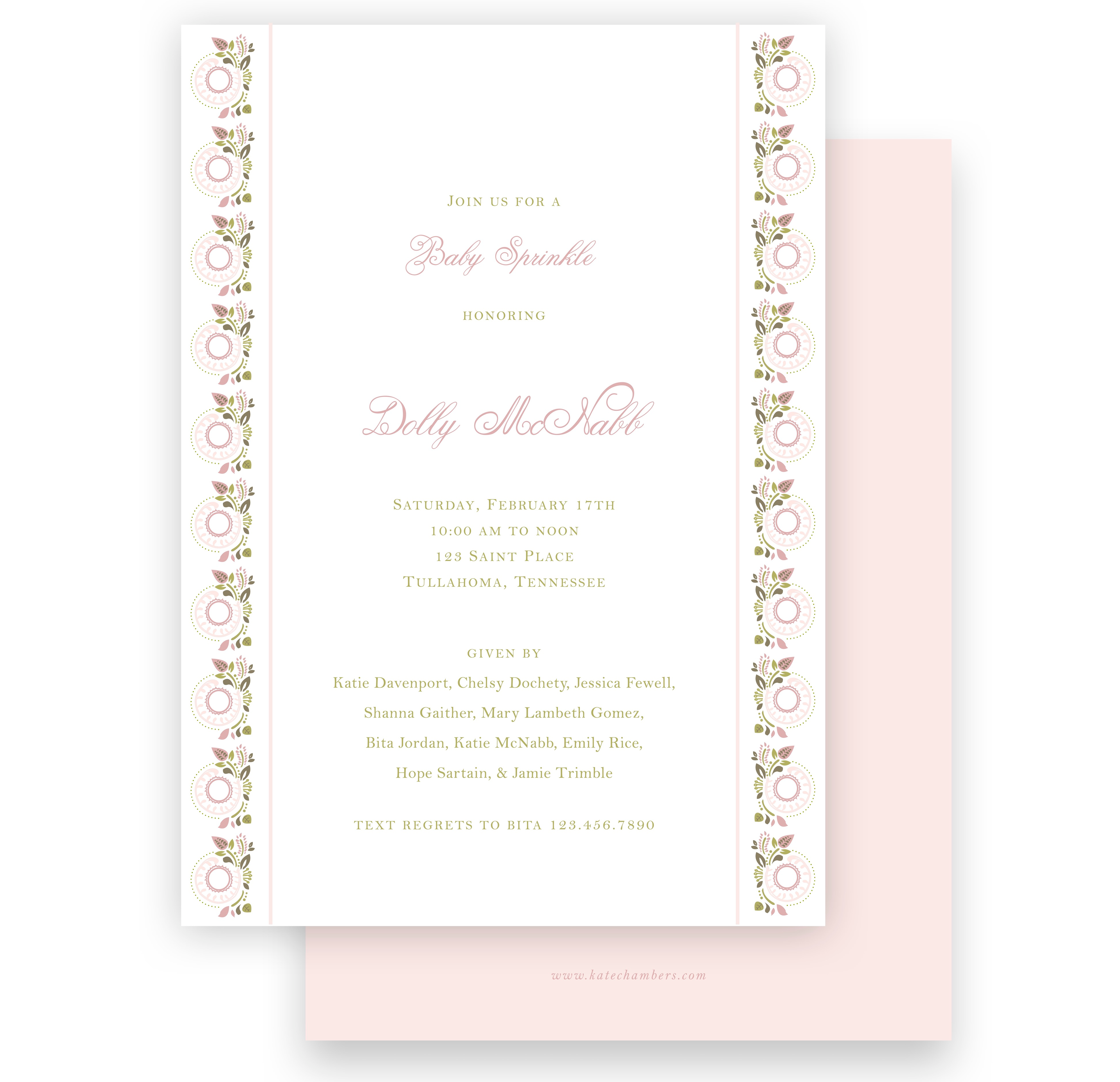 Floral Swirl Girls Baby Shower Invitation