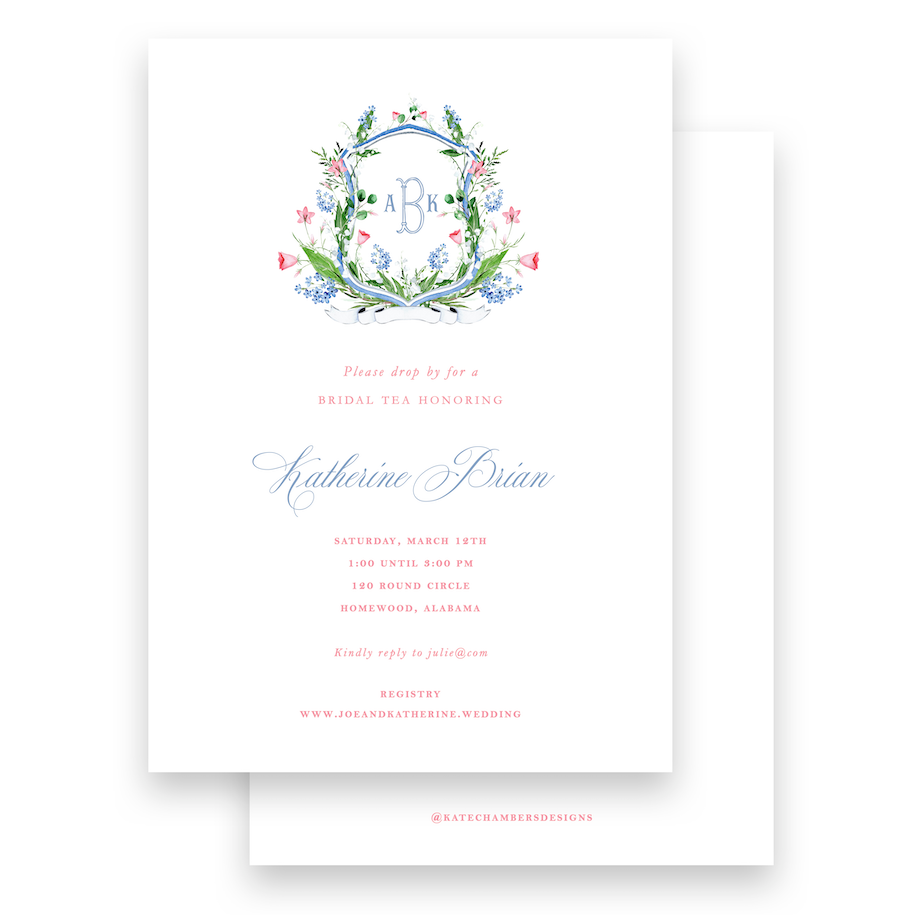 Watercolor Wildflower Botanical Crest with Monogram Baby Shower Invitation