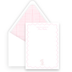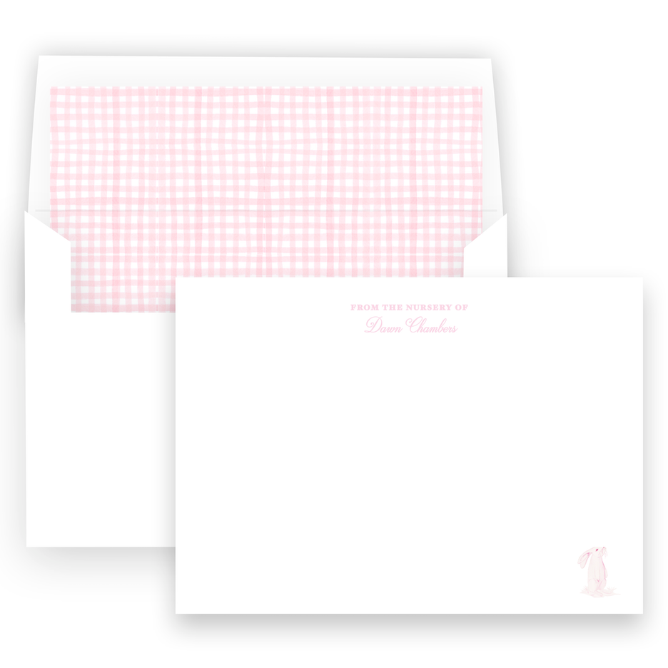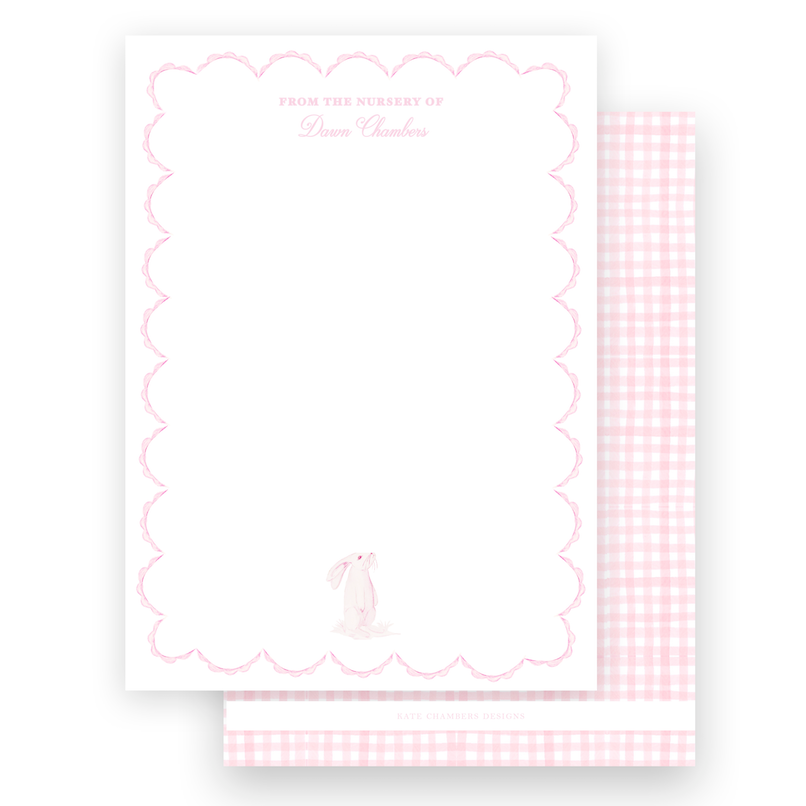 Pink Watercolor Bunny with Scallop Border Baby Stationery
