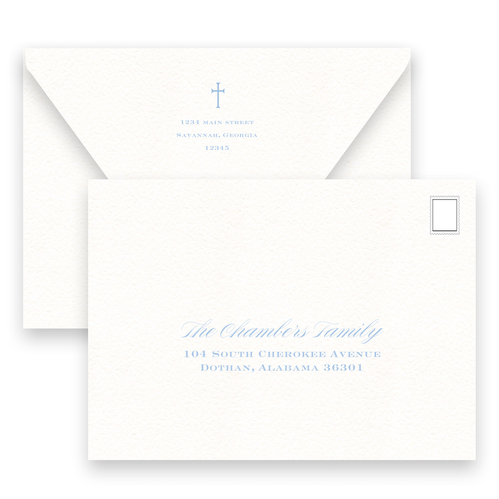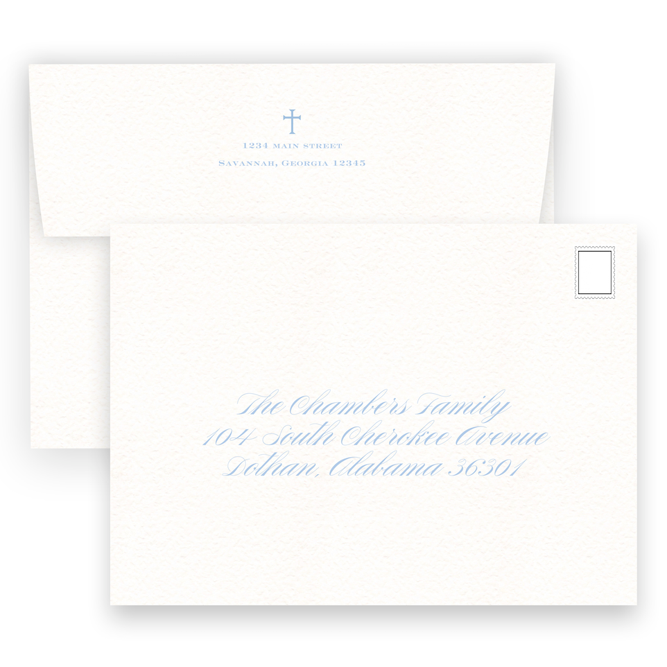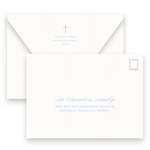 Blue & Grey Simple Cross with Detail Border Baptism Invitation