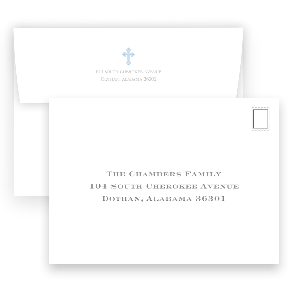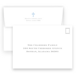 Blue Classic Cross with Watercolor Gingham Baptism Invitation