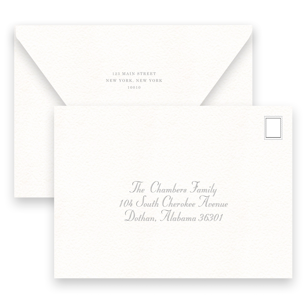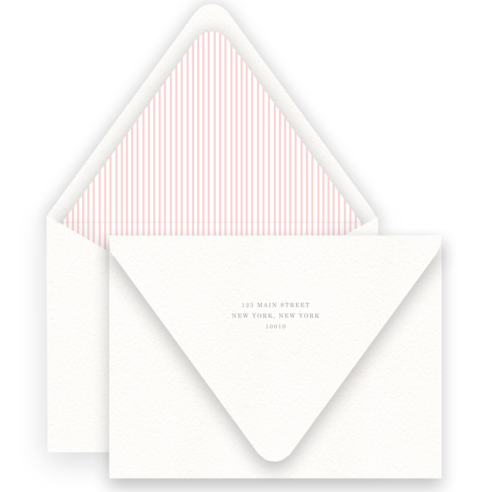 • Envelopes are included with your purchase and will match the paper of your printed product; euro flap envelopes, coordinating liners, gift tags, return and front addressing are available for purchase