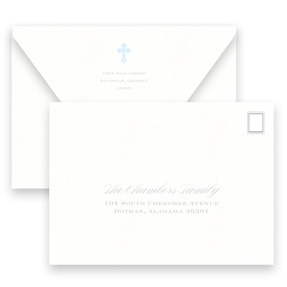 • Envelopes are included with your purchase and will match the paper of your printed product; euro flap envelopes, coordinating liners, gift tags, return and front addressing are available for purchase