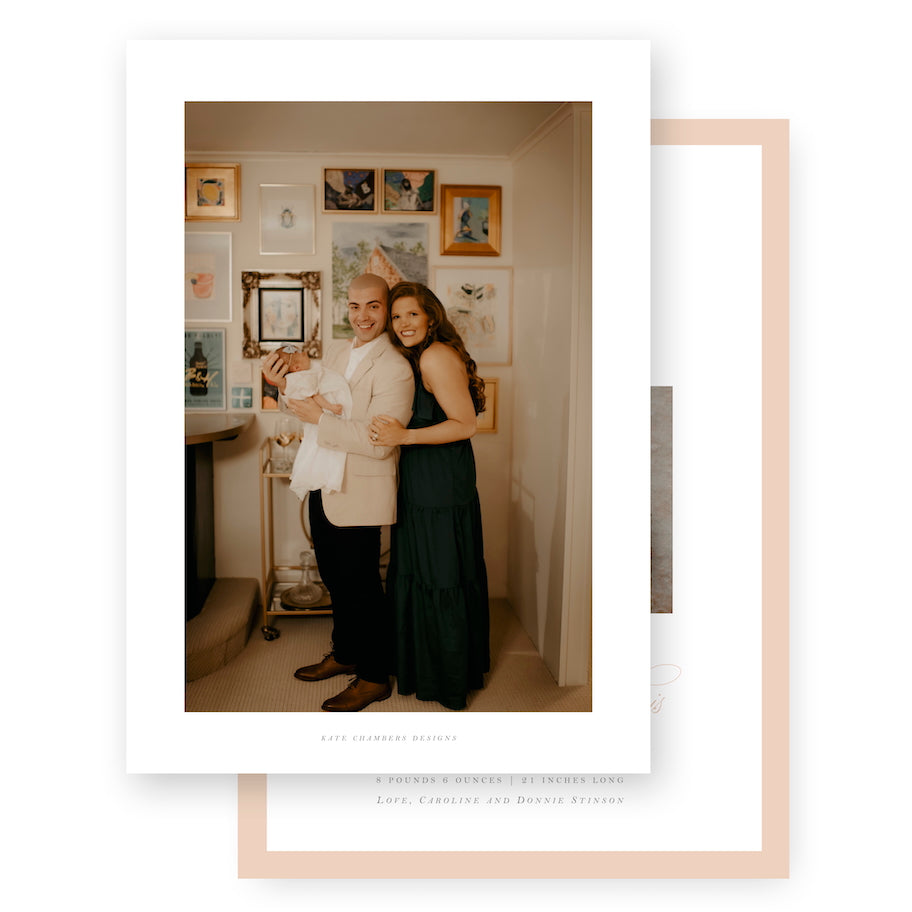 • Your photo can be printed on the card or attached. Photos can be attached by the client or by Kate Chambers Designs for $0.85/per card (Please see this option in the listing). If a photo is uploaded and the photo attachment option is not selected, your photo will be printed on the card.