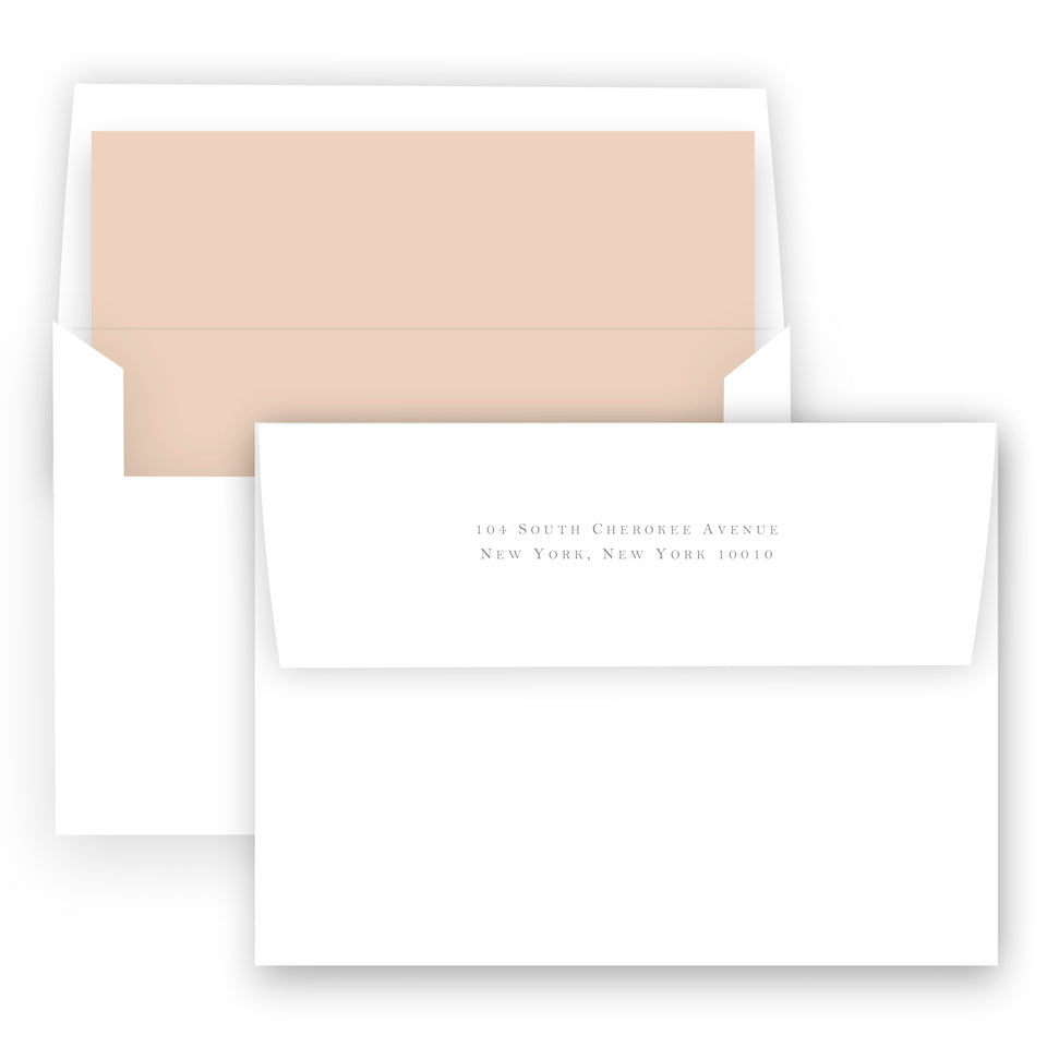 • Envelopes are included with your purchase and will match the paper of your printed product; euro flap envelopes, coordinating liners, gift tags, return and front addressing are available for purchase