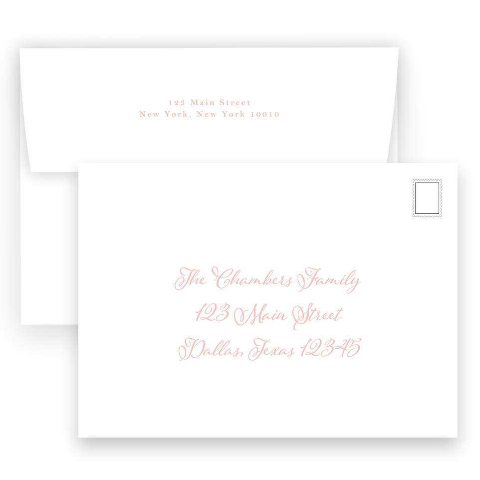 • Envelopes are included with your purchase and will match the paper of your printed product; euro flap envelopes, coordinating liners, gift tags, return and front addressing are available for purchase