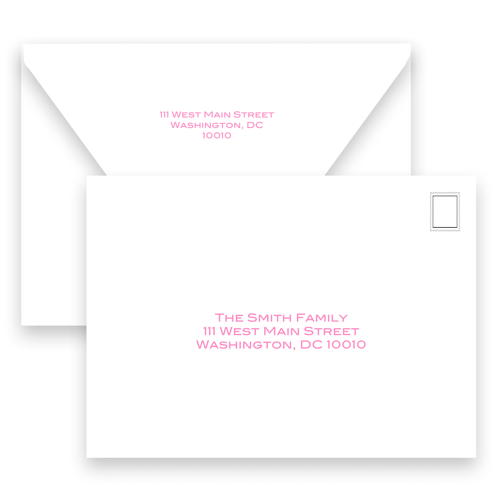 • Envelopes are included with your purchase and will match the paper of your printed product; euro flap envelopes, coordinating liners, gift tags, return and front addressing are available for purchase