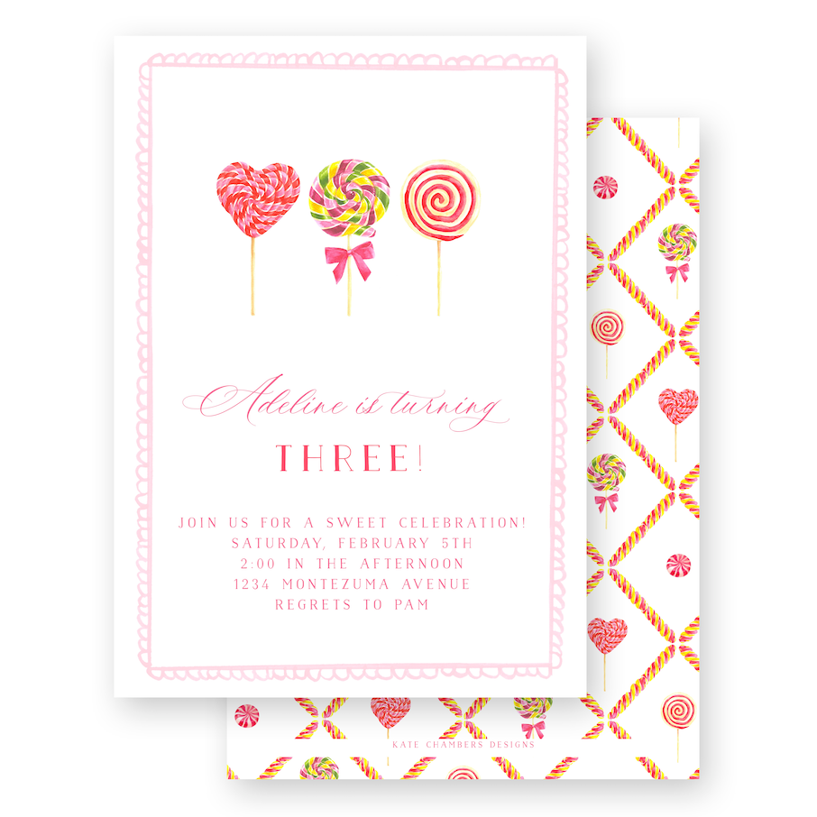 Watercolor Lollipop Sweets Birthday Party Invitation