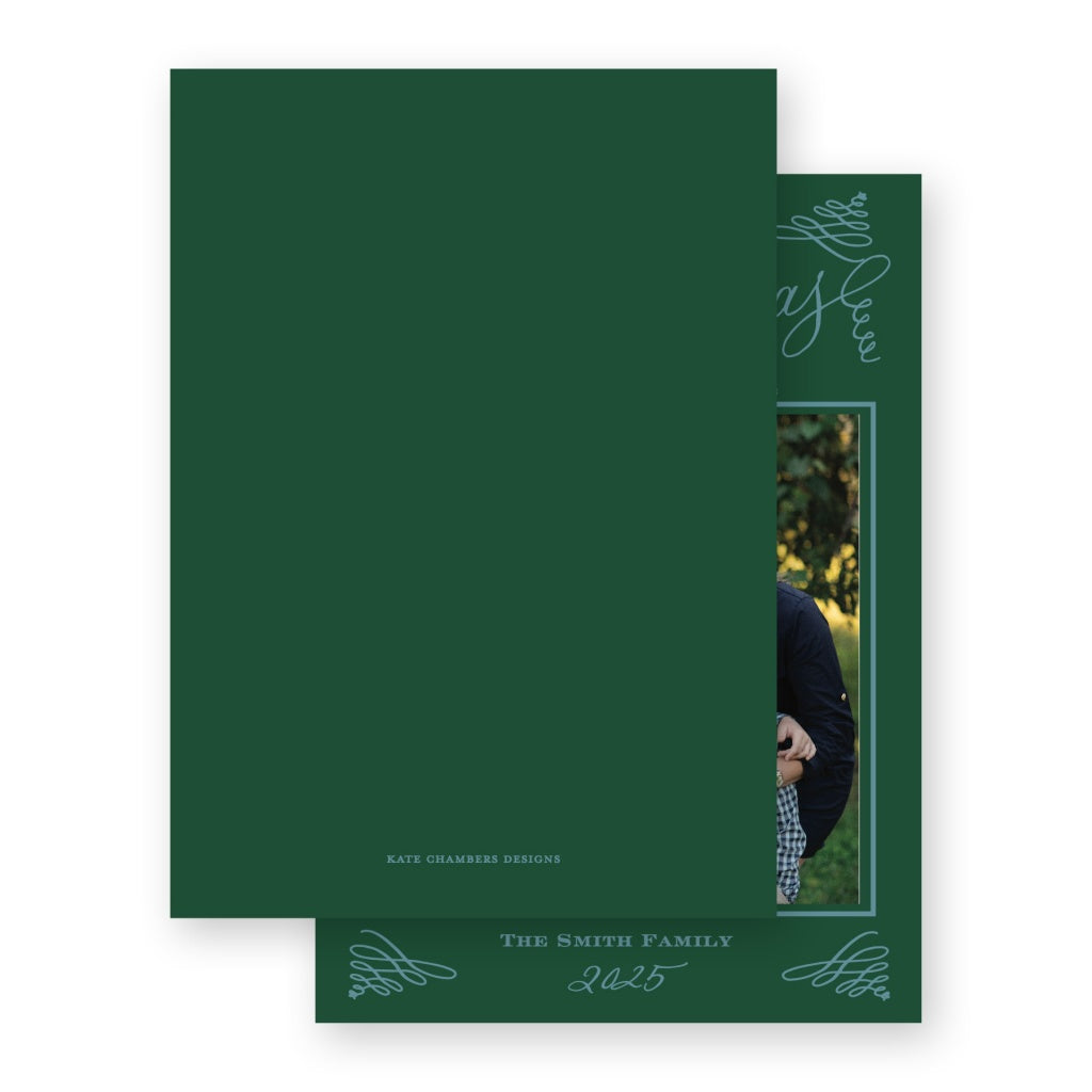 Green and Light Blue "Merry Christmas" Flourish Holiday Card
