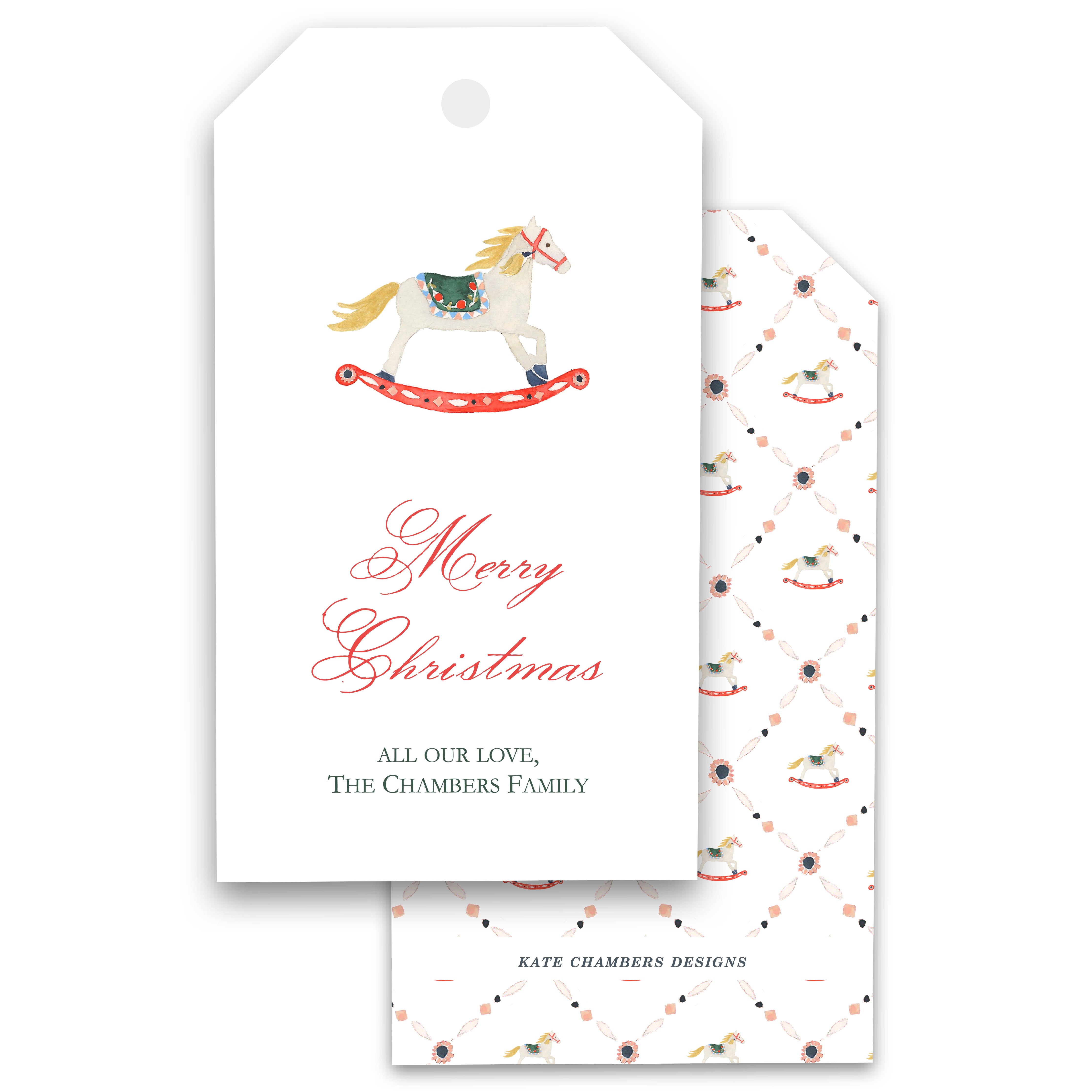 Watercolor Rocking Horse Holiday Gift Tag