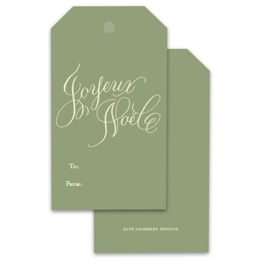 Joyeux Noel Green & Cream Holiday Gift Tags, Set of 12