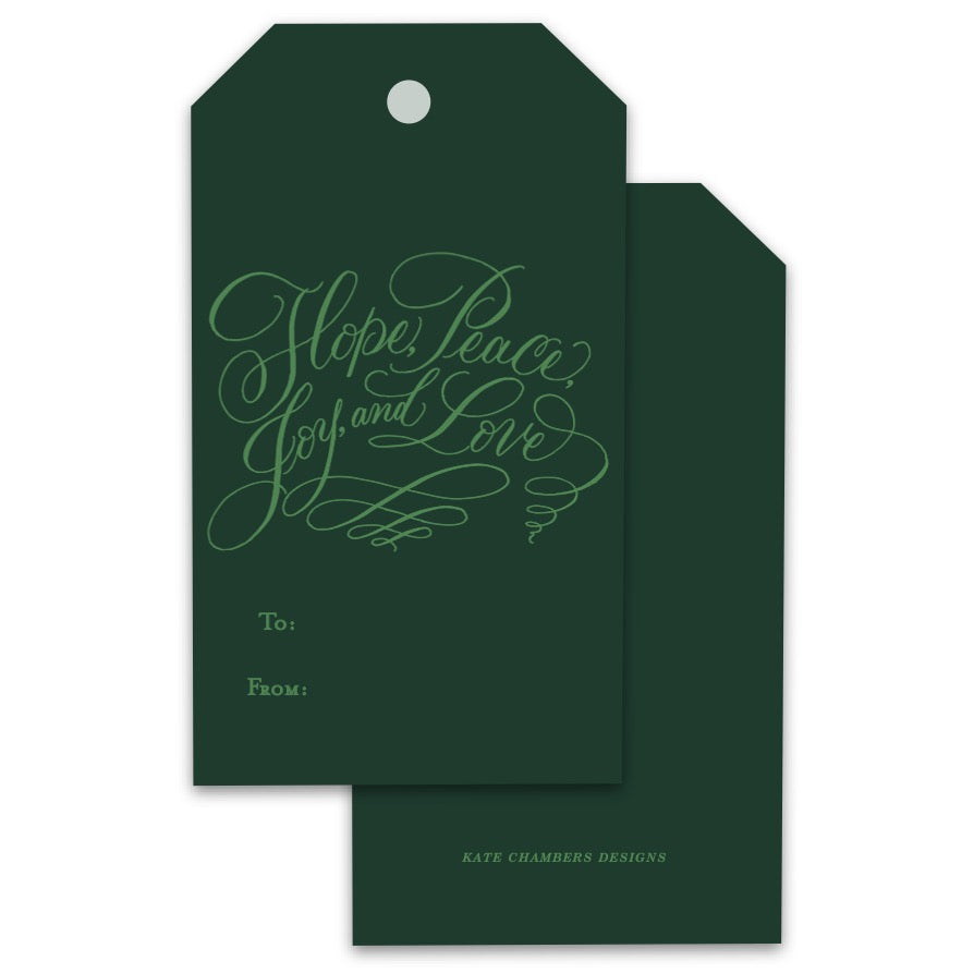 Lime on Green Hope, Peace, Joy & Love Holiday Gift Tags, Set of 12