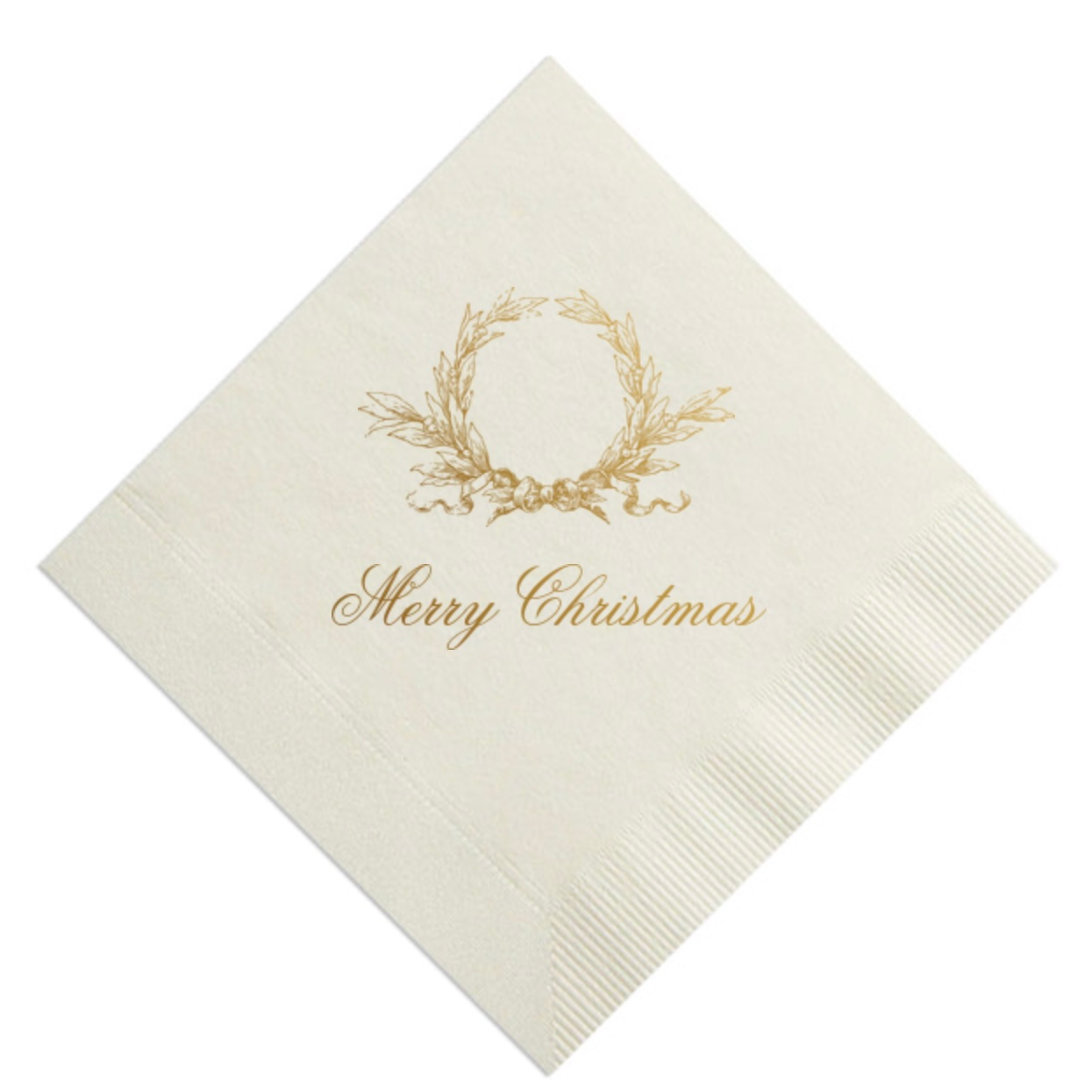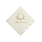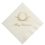 Gold on Cream wreath Merry Christmas Cocktail Napkins, set of 20