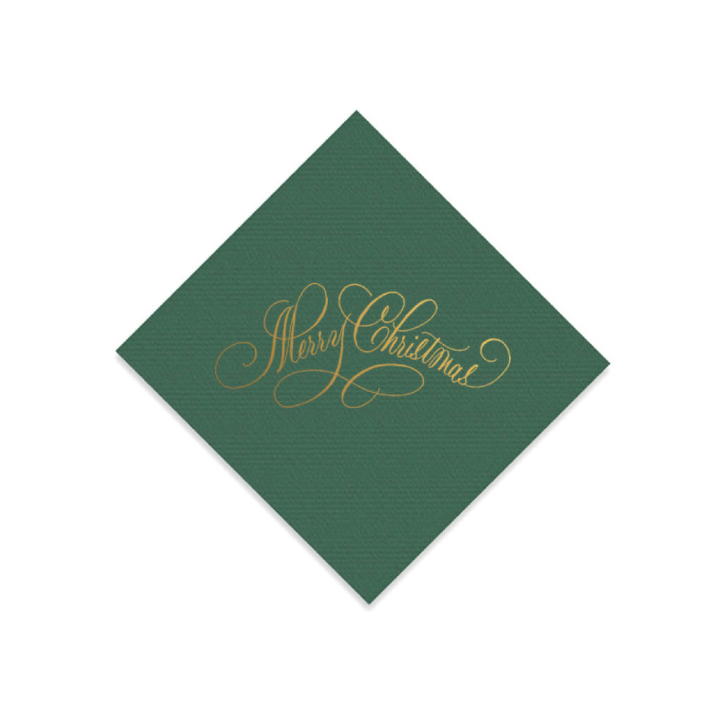 Merry Christmas Gold Foil on Forrest Green Elegance Napkins, Set of 20