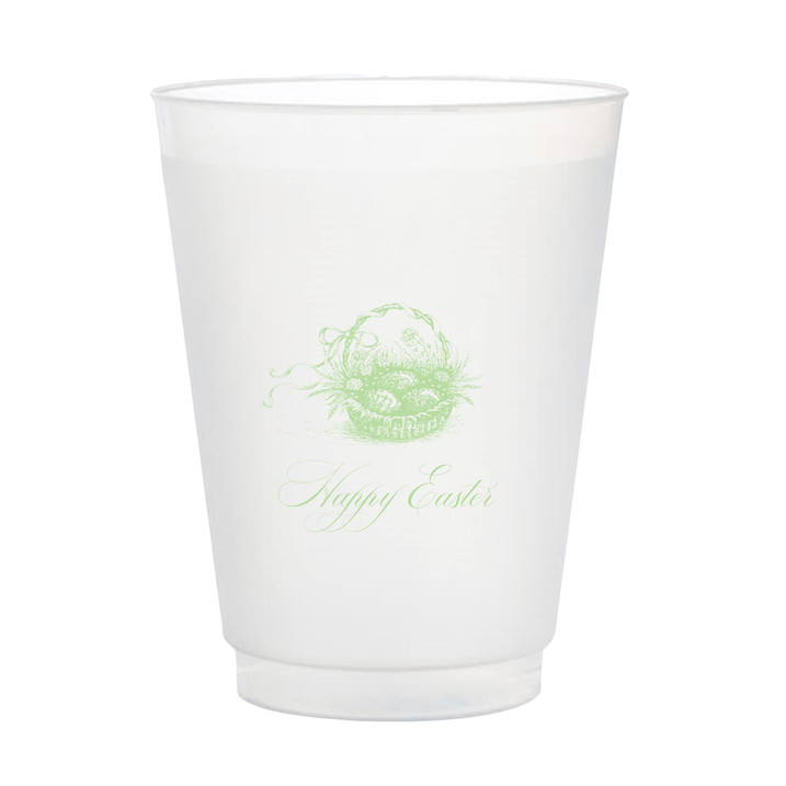 This 12 oz. foil stamped frosted cup is adorned with a colored vintage Easter basket, perfect for your Easter gathering. Show your guests your attention to detail with this festive and durable cup!