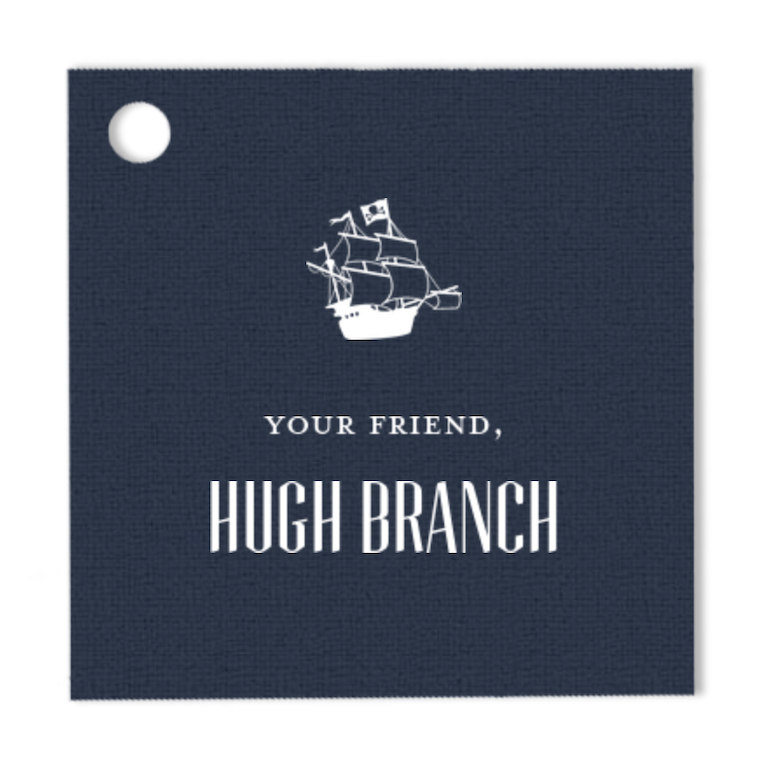 Custom Navy and White Square Sailboat Foil Gift Tag