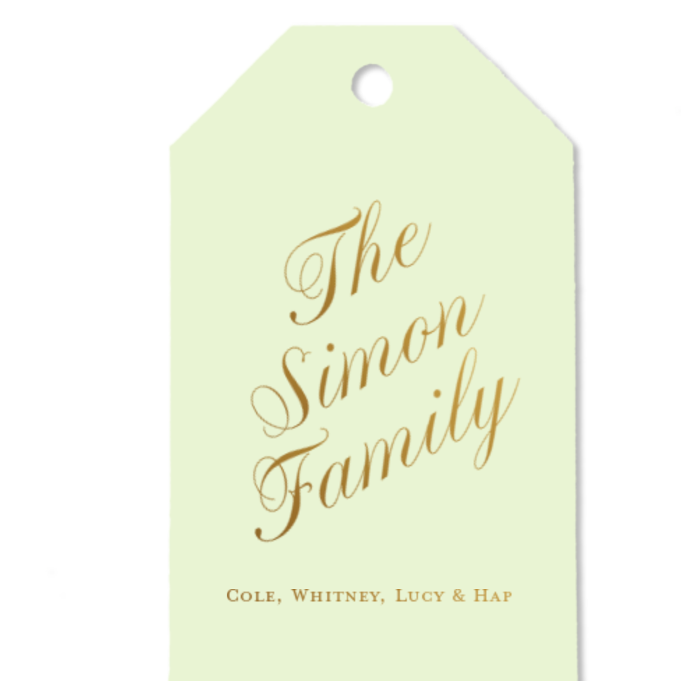 Custom Slate and Ivory Family Double Point Foil Gift Tag