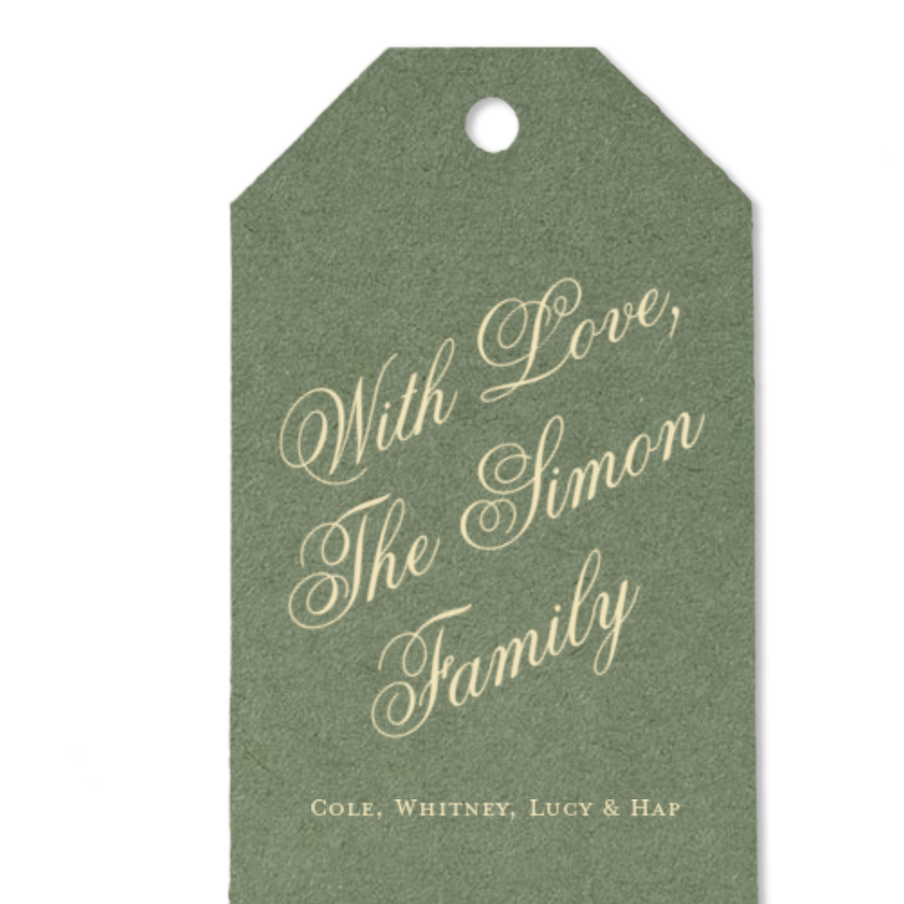 Custom Dark Sage and Ivory Script Family Luggage Foil Gift Tag