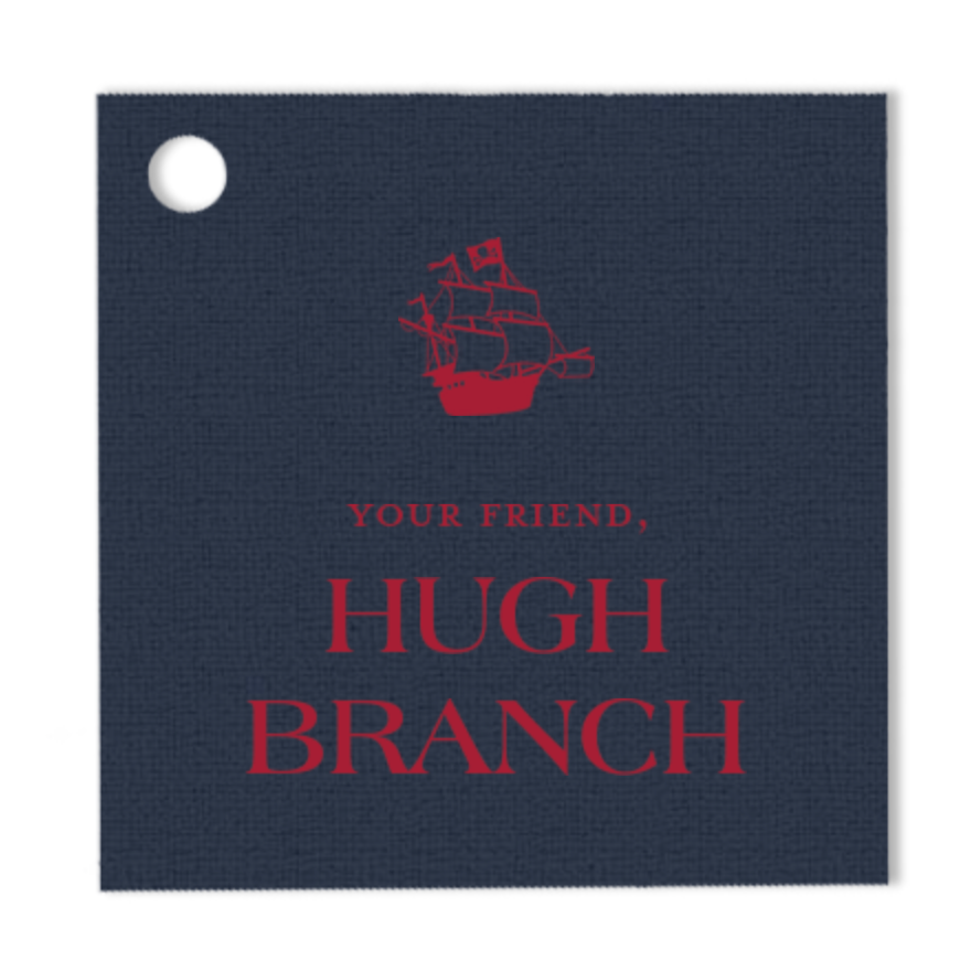 Custom Navy and Red Square Sailboat Foil Gift Tag