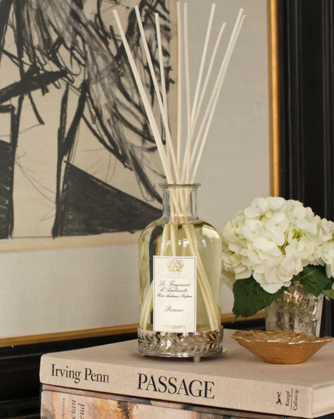 The Product: The signature product in our collection. Utilizing apothecary inspired bottles filled with exquisite fragrance, the scent permeates the air via our signature reeds which are inserted into the bottle. The reeds absorb the fragrance and subtly distribute it throughout the air, providing lasting, beautiful scent. Customize the intensity by flipping the reeds — flip every day for more intense scent or once a week for more subtle fragrance.