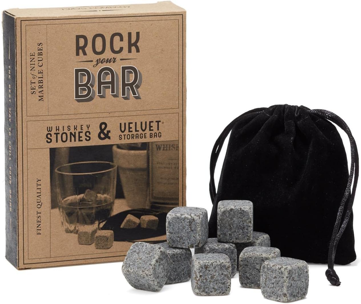 Two's Company Rock Your Bar Whiskey Stones and Storage Bag